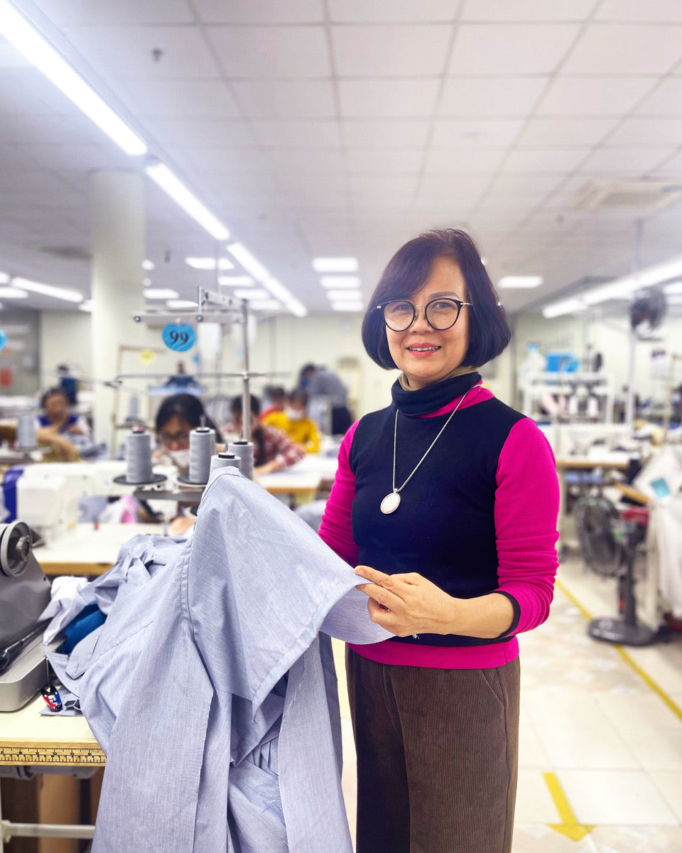 Our atelier, ShirtbyHand Production Company Hanoi, produces the blouses for Arber Studio and the shirts for ShirtbyHand, our menswear partner. Here, a dedicated team of artisans works under fair conditions with craftsmanship, care, and respect for both people and the planet. This allows us to maintain the highest standards, produce only what is requested, and eliminate waste entirely.